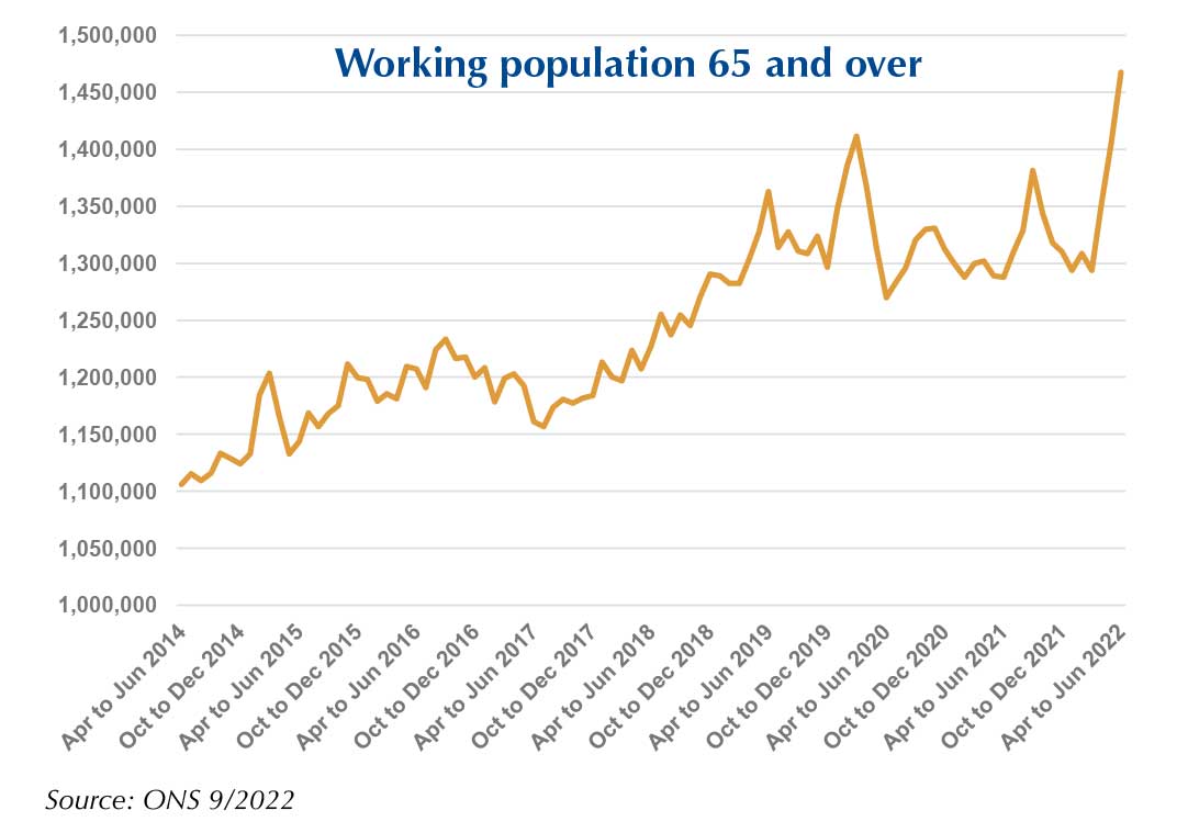 The combination of sharply rising inflation and the increase in state pension age to 66 is likely to be forcing some former retirees back into work to make ends meet. It does not help that the April 2022 increase in the state pension was 3.1%, less than a third of the current (August) rate of CPI inflation.